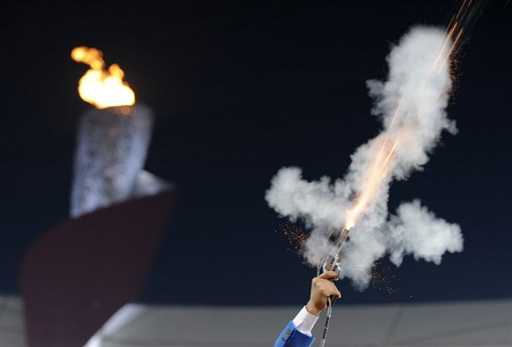 8月20日,北京奧運會田徑比賽在國家體育場鳥巢繼續(xù)進行。圖為發(fā)令槍響的瞬間。