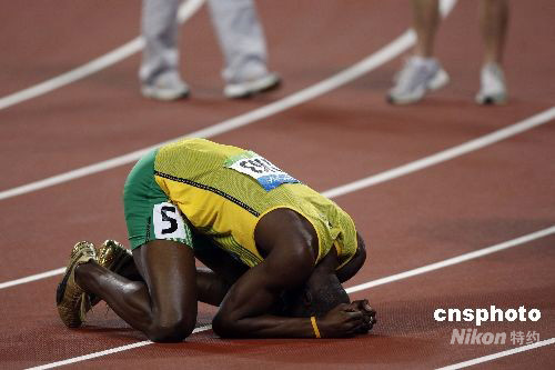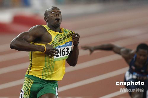 8月20日晚,即將于8月21日迎來22歲生日的牙買加選手尤塞恩·博爾特,在國家體育場“鳥巢”再造神話,在北京奧運會男子200米決賽中,以19秒30獲得金牌,并打破約翰遜保持12年之久的19秒32的世界紀錄。這是繼博爾特16日晚以9秒69打破男子100米世界紀錄后,再一次在“鳥巢”創(chuàng)造奇跡。中新社發(fā) 盛佳鵬 攝
