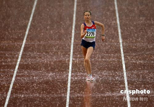 北京奧運(yùn)會(huì)女子20公里競(jìng)走8月21日上午在大雨中舉行,俄羅斯選手奧莉加·卡尼斯金娜以1小時(shí)26分31秒的成績(jī)獲得金牌;挪威選手謝斯蒂·蒂瑟·普拉策以1小時(shí)27分07秒的成績(jī)奪得銀牌;意大利選手埃莉薩·里高多以1小時(shí)27分12秒的成績(jī)獲得銅牌。中國選手劉虹成績(jī)?yōu)?小時(shí)27分17秒,名列第四,無緣獎(jiǎng)牌。 中新社發(fā) 任晨鳴 攝