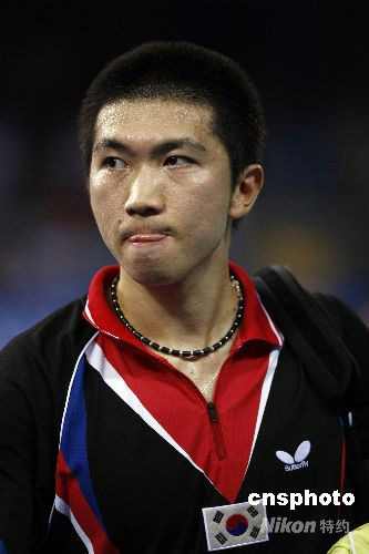 柳承敏輸球后黯然神傷。