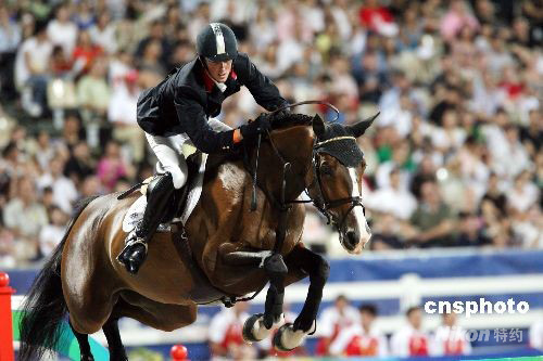 圖:英國選手馬厄在馬術(shù)場地障礙賽獲得零罰分