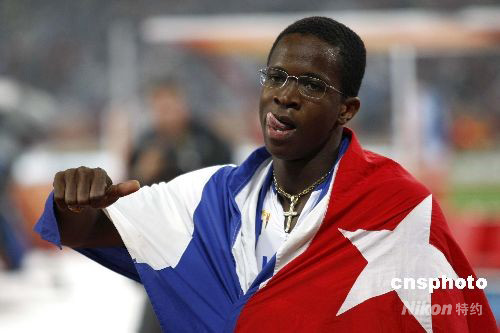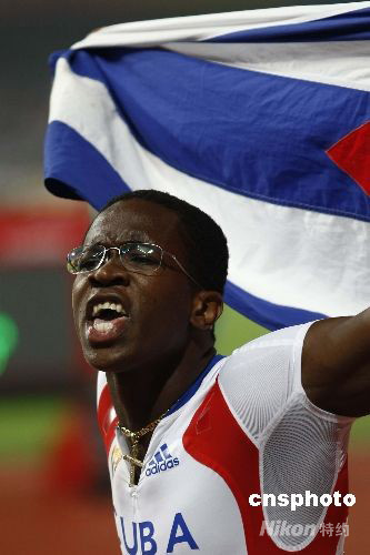 羅伯斯慶祝北京奧運男子110米欄奪冠。 中新社發(fā) 盛佳鵬 攝