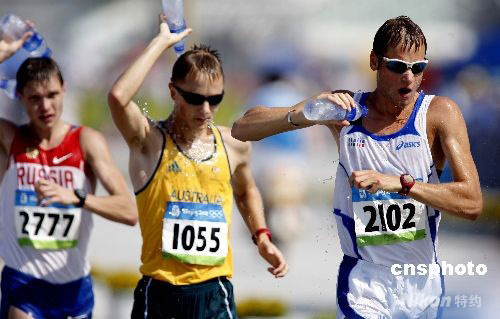 8月22日,北京奧運會田徑比賽第八日,在男子50公里競走比賽中,意大利選手亞歷克斯-施瓦策以3小時37分09秒奪得冠軍。 中新社發(fā) 盛佳鵬 攝