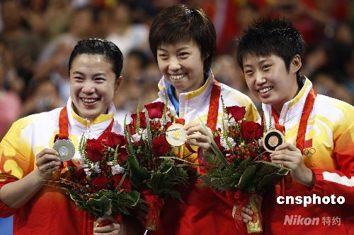 圖:中國選手包攬奧運會乒乓球女單金銀銅牌