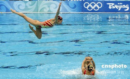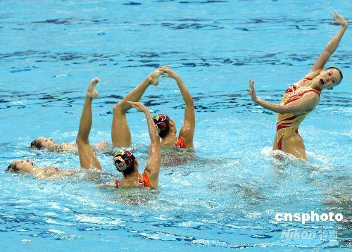 8月23日,北京奧運會花樣游泳集體項目比賽結(jié)束,中國隊以總分97.334分獲得銅牌,實現(xiàn)了奧運會在這個項目上的突破。俄羅斯隊?wèi){99.500分獲得金牌,西班牙隊以98.251分奪得銀牌。中新社發(fā) 杜洋 攝