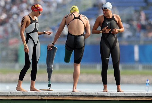 人們關(guān)注的是她的腿—左腿膝蓋以下部分被全部截去,并且比健全右腿的對(duì)稱部分細(xì)了18厘米。在對(duì)手“如林”的長(zhǎng)腿中,這雙殘缺的腿愈發(fā)顯得突兀。她就是杜托伊特,她成為奧運(yùn)史上首位與健全人同場(chǎng)競(jìng)技的女子肢殘游泳選手。