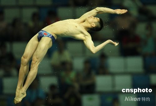 圖為周呂鑫在比賽中完美起跳。中新社發(fā) 杜洋 攝