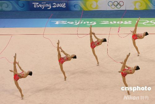 8月24日,中國藝術體操隊在北京奧運會藝術體操集體全能決賽中奪得銀牌,取得歷史性突破。中新社發(fā) 武仲林 攝