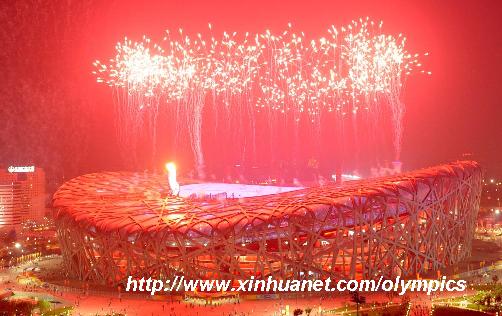 8月24日,第29屆夏季奧運(yùn)會(huì)閉幕式在國家體育場——“鳥巢”舉行。這是閉幕式上燃放的焰火。 新華社記者 李鋼 攝