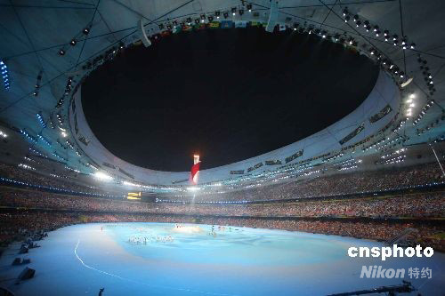 8月24日晚,北京奧運(yùn)會(huì)閉幕式在奧林匹克公園內(nèi)的國家體育場(chǎng)舉行,燃燒了16天的北京奧運(yùn)會(huì)火炬即將熄滅。 中新社發(fā) 任晨鳴 攝
