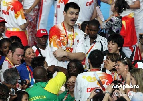 圖:姚明北京奧運(yùn)會(huì)閉幕式上受追捧
