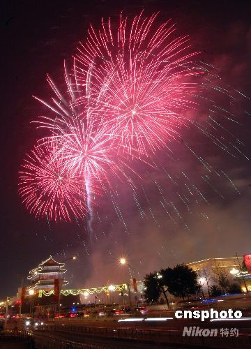 8月24日晚,第29屆夏季奧運(yùn)會(huì)在北京國(guó)家體育場(chǎng)“鳥(niǎo)巢”勝利閉幕。北京天安門(mén)廣場(chǎng)燃放了20分鐘焰火,將正陽(yáng)門(mén)上空照耀得絢麗多彩。中新社發(fā) 鄒憲 攝