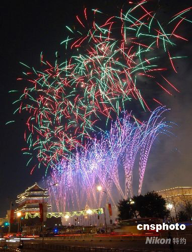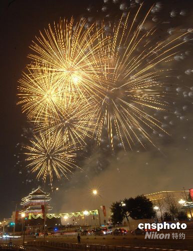 8月24日晚,第29屆夏季奧運會在北京國家體育場“鳥巢”勝利閉幕。北京天安門廣場燃放了20分鐘焰火,將正陽門上空照耀得絢麗多彩。中新社發(fā) 鄒憲 攝