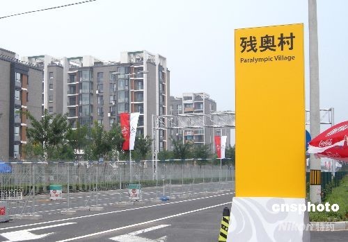 2008年8月28日,第13屆北京殘奧會(huì)彩旗在北京殘奧村四周迎風(fēng)飄揚(yáng)。當(dāng)日14時(shí),殘奧村預(yù)開村,開始接待北京殘奧會(huì)運(yùn)動(dòng)員。據(jù)悉,預(yù)計(jì)將有2000多名殘疾人運(yùn)動(dòng)員入住殘奧村。中新社發(fā) 玉龍 攝