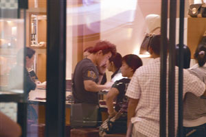 王皓在名店內(nèi)打電話挑手袋款式。(圖片來(lái)源:澳門日?qǐng)?bào))