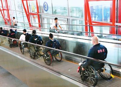 9月1日下午,來自美國的殘奧大家庭成員,坐著輪椅順利通過首都機(jī)場內(nèi)的無障礙入境專用通道。