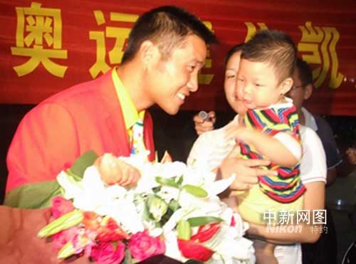 北京奧運(yùn)會(huì)結(jié)束已近十天,妻子徐鋒月一直期盼著丈夫的歸來。對(duì)于她來說,丈夫今晚歸來也是很突然的。“奧運(yùn)會(huì)結(jié)束后,他還是特別的忙,出席各式各樣的活動(dòng),每天都要忙到十二點(diǎn)才能休息,所以我很少能聯(lián)系上他。直到昨天,他才告訴我今天要回來!毙熹h月還特意將十五個(gè)月大的兒子帶到了蕭山機(jī)場。