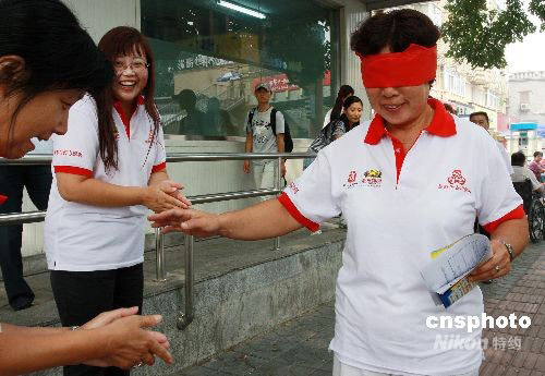 殘奧會(huì)志愿服務(wù)行動(dòng)日 北京市民街頭體驗(yàn)盲道