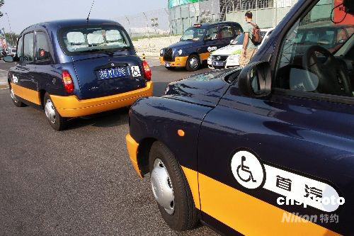 9月5日,北京一批無障礙出租車“蹲守”在殘奧村附件服務(wù)殘奧盛會,成為北京一景吸引市民觀看。近日,首汽和北汽公司的70輛無障礙出租車組隊(duì)投入殘奧會的服務(wù)中,這些出租車司機(jī)均經(jīng)過相關(guān)培訓(xùn),幫助殘疾乘客時(shí),都將先詢問對方意見。這70輛無障礙出租車都是新購置的,包括“倫敦出租車”等4種車型。70輛出租車均配備了雙班司機(jī),這些車輛分批駐守殘奧村等地,保障殘奧大家庭成員的出行。中新社發(fā) 鄭雄增 攝