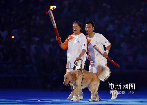 北京殘奧會開幕式上平亞麗帶導(dǎo)盲犬傳遞火炬