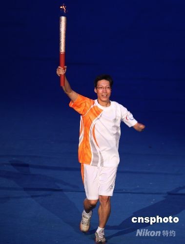 圖為開幕式上的火炬?zhèn)鬟f。中新社發(fā) 宋吉河 攝