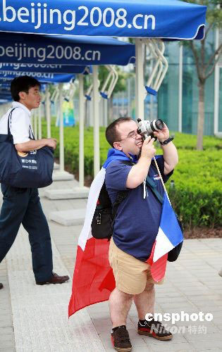 9月6日,一名外國(guó)殘障友人在奧林匹克公園專注地用相機(jī)進(jìn)行拍攝。中新社發(fā) 屈兵超 攝