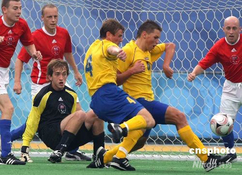 北京殘奧會(huì)七人制(男子)足球比賽9月8日在北京奧林匹克公園內(nèi)的橄欖球場(chǎng)開賽,實(shí)力超群的烏克蘭隊(duì)以8比1擊敗英國(guó)隊(duì)。圖為獨(dú)中三元的烏克蘭隊(duì)6號(hào)伊萬(wàn)·什克瓦洛(黃)在英國(guó)隊(duì)禁區(qū)內(nèi)恣意沖殺,如入無(wú)人之境。殘奧會(huì)七人制(男子)足球比賽在橄欖球賽場(chǎng)舉行,全場(chǎng)共60分鐘。 中新社發(fā) 任晨鳴 攝
