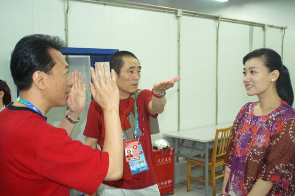 張藝謀總導(dǎo)演和張繼剛導(dǎo)演到后臺(tái)看譚晶