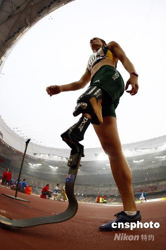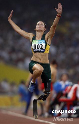9月8日,北京殘奧會(huì)女子跳遠(yuǎn)F42級(jí)決賽上,澳大利亞選手克里斯蒂娜·沃爾夫以3米73獲得冠軍,獲得亞軍和季軍的分別是荷蘭選手安妮特·羅曾和波蘭選手埃娃·杰琳斯卡,成績(jī)分別為3米63和3米62。中國(guó)選手張海原以3米44名列第五。冠軍沃爾夫6跳全部成功,最好成績(jī)出現(xiàn)在第五跳的3米73,這也打破了張海原在雅典奧運(yùn)上創(chuàng)造的3米67的世界記錄。 中新社發(fā) 杜洋 攝