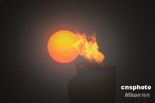 9月8日,北京,中國國家體育場——鳥巢,殘奧會的圣火在紅日的輝映下熊熊燃燒。 中新社發(fā) 廖攀 攝