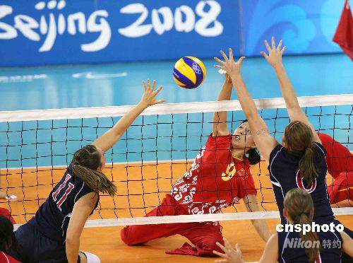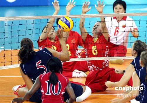 圖:殘奧會坐式排球中國女隊完勝美國