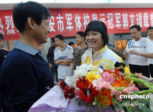 9月9日,在教師節(jié)的前一天,北京奧運(yùn)會女子10米氣手槍冠軍、西安姑娘郭文珺回到了自己的母校,看望自己的恩師黃彥華和市軍體校的師生。