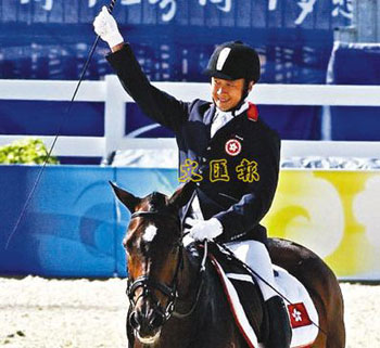 隨著極具東方特色的音樂響起,葉少康策騎老拍檔“履冰之注”,優(yōu)雅地步入比賽場地。看臺上很多觀眾都揮舞小區(qū)旗為他加油,有人更展示出“葉少康加油”的橫幅。比賽結(jié)束時,掌聲如雷,更有人高喊“Nelson!Nelson!(葉少康的英文名)”。有觀眾表示,香港從沒出過一個殘奧馬術(shù)騎手,不管成績?nèi)绾,葉少康都已是港人之光。