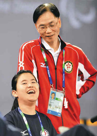 4年前雅典殘奧會,首次參賽的中國香港硬地滾球隊一舉摘得兩金,可惜,摕o緣金牌!皬难诺浠貋碇笏恢焙芮趭^,就為了這塊金牌。在香港的時候,我們每周二、四、六晚上訓練,每次訓練兩小時,遇到快要比賽的時候,周日會全天訓練!惫藰s動情地說:“這枚金牌是我們兩個人的夢想,終于實現(xiàn)了。”