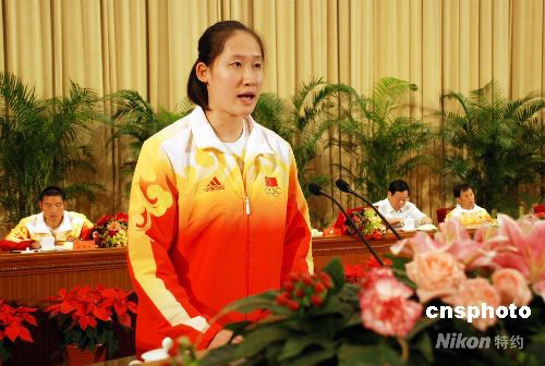 圖:奧運(yùn)會女子蝶泳冠軍劉子歌在報(bào)告會上發(fā)言