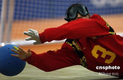 9月14日,北京殘奧會盲人門球女子金牌爭奪戰(zhàn)中,美國隊戰(zhàn)勝中國隊獲得冠軍。中新社發(fā) 杜洋 攝