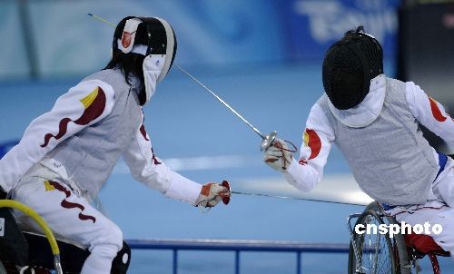 9月14日,北京殘奧會(huì)輪椅擊劍在北京國際會(huì)議中心擊劍館進(jìn)入首個(gè)比賽日,男子個(gè)人花劍A級(jí)決賽上演了一場(chǎng)“中國德比戰(zhàn)”,最終3號(hào)種子葉如意(右)15-12戰(zhàn)勝隊(duì)友6號(hào)種子張蕾,奪得金牌。
