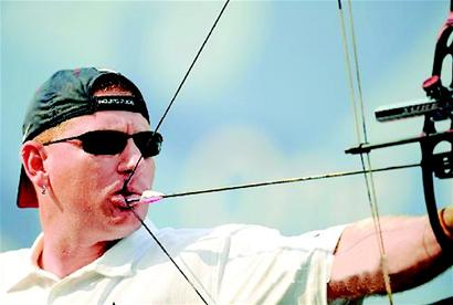 美國選手杰夫·法布里是個(gè)射箭好手,可惜他卻不能用自己的兩只手來射箭。在他15歲的時(shí)候,一次摩托車事故使得他失去了右手和右腿。后來,他開始練習(xí)射箭。他裝了一條鐵臂,鉤子手發(fā)出幽幽的金屬光澤,充滿殺氣。在受傷20年之后,他出現(xiàn)在了北京殘奧會(huì)上。
