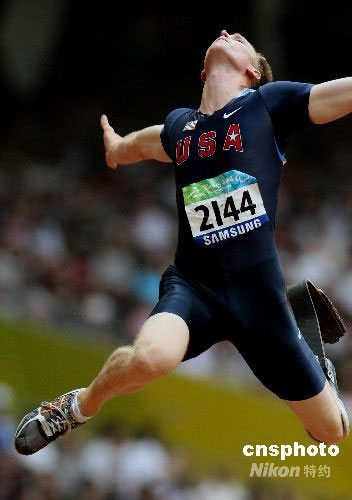 北京殘奧會田徑:美國跳遠選手在“鳥巢”飛翔