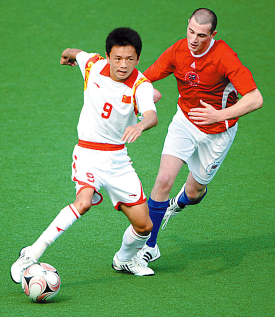 平均年齡20歲出頭、集訓時間不到兩年的中國腦癱足球隊,今天以2∶10負于英國隊。他們賽前就知道自己遠不是那些平均年齡近40歲、配合時間長達十余年的對手,但他們堅持拼完整場比賽,他們只想告訴觀眾,他們絕不會放棄。