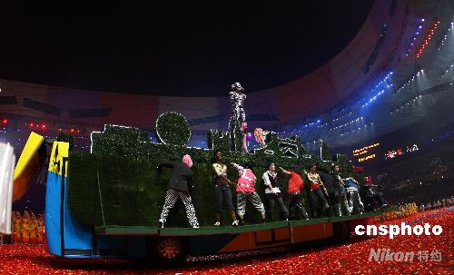 9月17日晚,北京2008年殘奧會閉幕式在國家體育場舉行。在閉幕式上下屆舉辦城市英國倫敦進(jìn)行了“倫敦八分鐘”表演。 中新社發(fā) 杜洋 攝