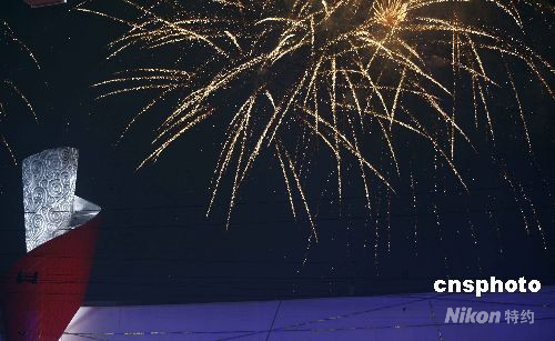 圖:殘奧閉幕式上絢麗焰火映照“鳥巢”