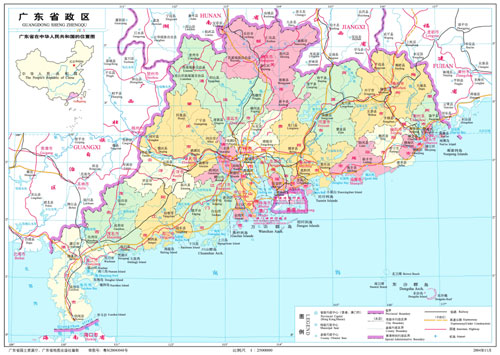 廣東位于中國(guó)大陸最南部,南臨南海,海岸線總長(zhǎng)3368公里,島嶼眾多。地勢(shì)北高南低,境內(nèi)山地、平原、丘陵交錯(cuò)。河流大多自北向南流,主要有珠江、韓江、鑒江等。最長(zhǎng)的珠江由西江、北江、東江匯流而成,長(zhǎng)2122公里,是中國(guó)第三大河流。南海沿岸的珠江三角洲、韓江三角洲土地肥沃,是著名的魚米之鄉(xiāng)。