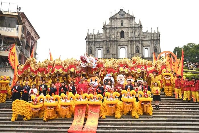 大三巴前龍獅舞 一片歡騰賀新春