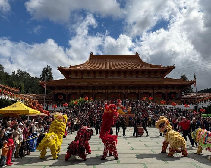 美國各族裔民眾在佛光山西來寺同享馬年春節(jié)喜悅