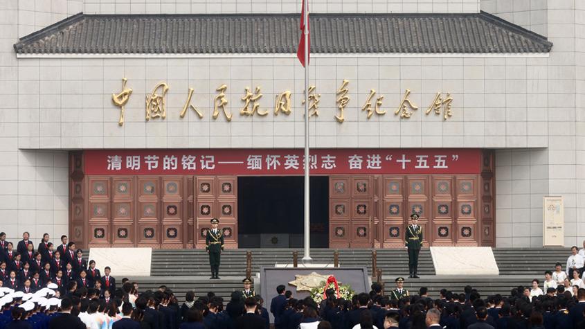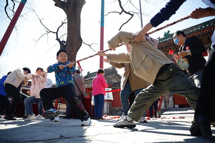 北京居庸關(guān)長(zhǎng)城山花綻放 列車穿行花海美景如畫(huà)