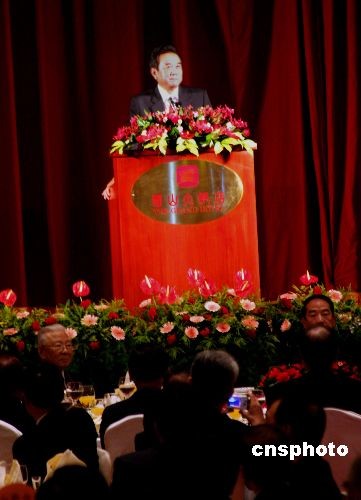 圖:陳云林在連戰(zhàn)設(shè)下的歡迎晚宴上致辭