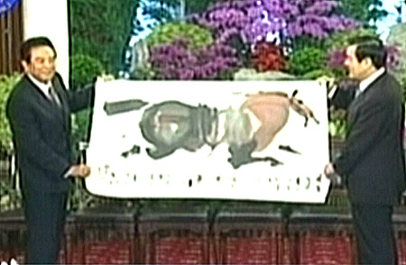 圖:連戰(zhàn)、陳云林互贈禮物