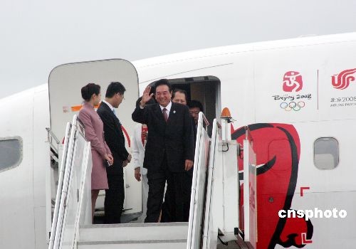 圖:陳云林乘包機(jī)抵達(dá)臺(tái)灣桃園機(jī)場(chǎng)