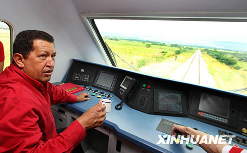 圖:委內瑞拉總統(tǒng)參加中國火車試車活動